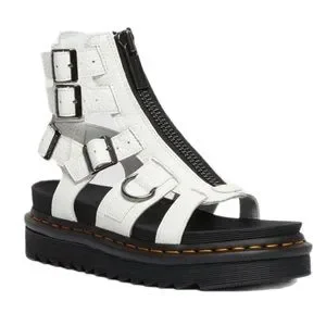 Bold black gladiator style sandals with signature Dr. Martens quality. easy on easy off with the zipper, plus the buckles are adjustable for a good custom fit. Durable and fashionable. The silver hardware is fantastic