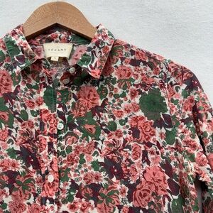 Sezane Womens XS (34) Floral Button Up Shirt Cotton Silk Blend Quiet Luxury