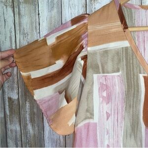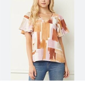 Entro blouse XL, Entro Violet Skye top, Entro abstract print blouse, Entro flutter sleeve blouse, Entro pink tan cream top, Entro casual work blouse, Entro brushstroke print blouse, Entro XL flowy top, Entro chic feminine blouse, Entro statement sleeve blouse
