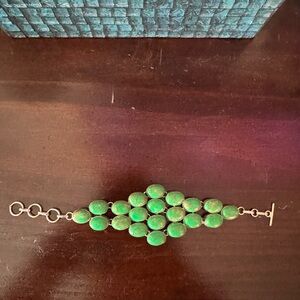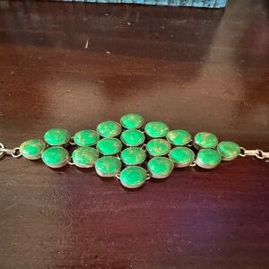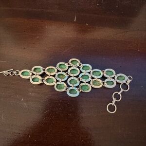 Unique Green Gemstone 925 Sterling Silver stamped Bracelet 8”