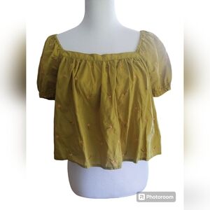 5/$25 Green Puff Sleeve Floral Embroidered Short Sleeve Cottagecore Top
