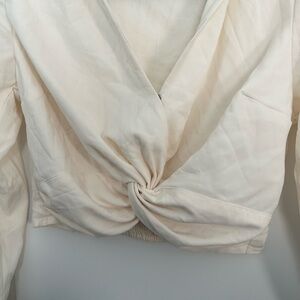 Abercrombie Cream Twist Front Cropped Collar Blouse
