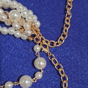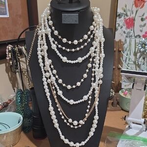 This item is a multi-strand simulated pearl necklace, often styled as a versatile, layered statement piece.