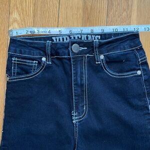 White contrast stitching. Classic 5-pocket style. Stretches to hug the body in all the right places! Excellent preloved condition.