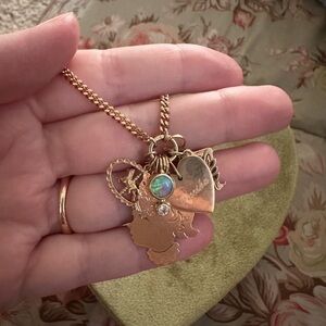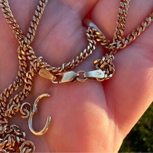 Vintage 9k ct yellow gold curb carabiner and catbird charm holder chain necklace