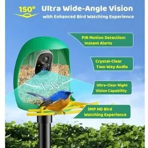 HIXX® Bird Feeder w/ Camera Solar Power Live Bird Watching Camera w/ AI Identify