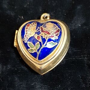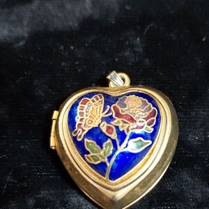 Charming heart-shaped locket watch with intricate floral design in vibrant blue and gold. A perfect accessory to enhance your elegance.