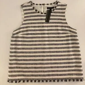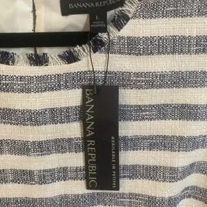 NWT- Banana Republic tweed striped sleeveless top - navy and white - size L