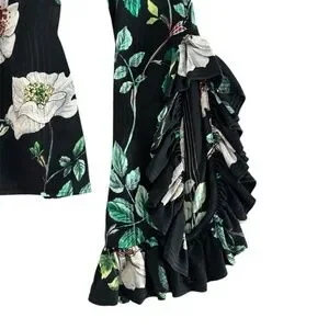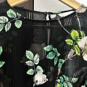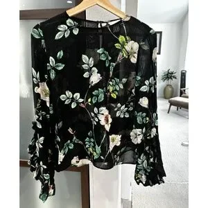 H&M Ruffle Sleeve Floral Blouse - Black & Green Size 6