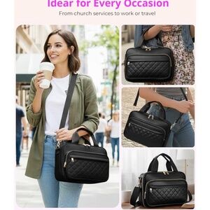 Designed to fit most standard-sized Bibles and Bible study supplies storage, includes a front slip pocket for sermon notes, prayer cards, or small items, plus 4 pen holders/loops to keep your favorite highlighters or pen secure, 5 card holders, and interior pockets to securely store Bibles, journals, church materials, and can holds an iPad up to 11"as well.
