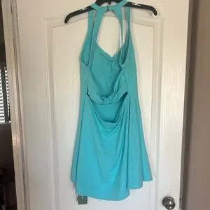 Stylish light blue dress with built in short. Sleeveless with a halter neck. Perfect for casual outings. Super soft athleisure wear.