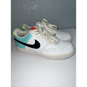 Nike Womens Court Vision Lo White Aqua Black Green Size 7.5 Shoes CZ9352-100