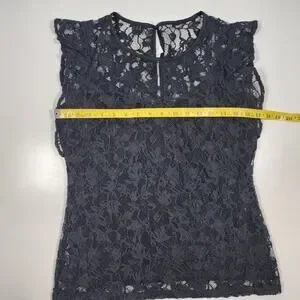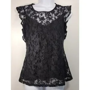 Style Description: Elegant and feminine black lace blouse featuring a sheer floral lace overlay with a soft lining through the body. Designed with a scoop neckline, delicate flutter cap sleeves, and a flattering slightly flared hem. Lightweight and breathable with a romantic, dressy aesthetic—perfect for layering or evening wear.