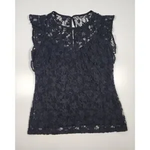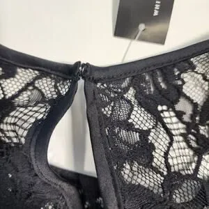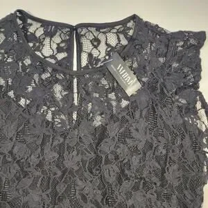 New With Tag WHBM Lace Blouse Black Size 2 Sheer Feminine Romantic Top
