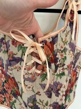 floral tapestry lace-up bustier corset crop top size small