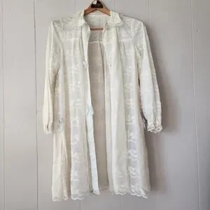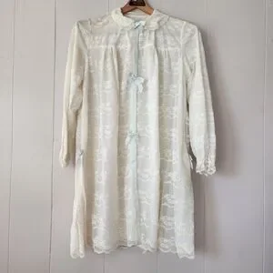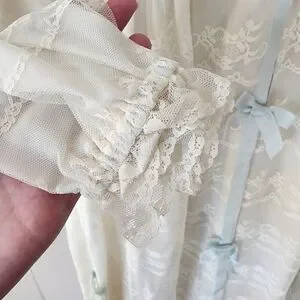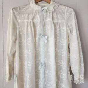 Vintage Odette Barsa Ivory Lace Peignoir Robe 1950s Sheer Blue Ribbon