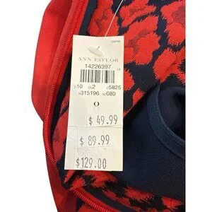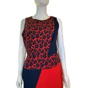 Ann Taylor Womens Animal Print Color Block Sheath Dress Red And Navy Size 8 NWT