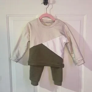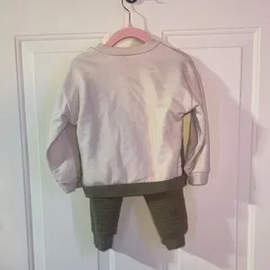 Stylish toddler set-Features a cream, white and green color scheme. Perfect for casual wear. A few stains- pictured