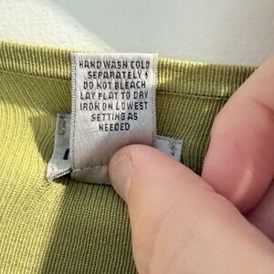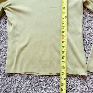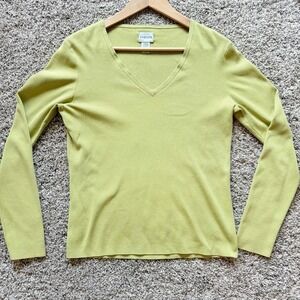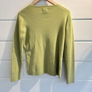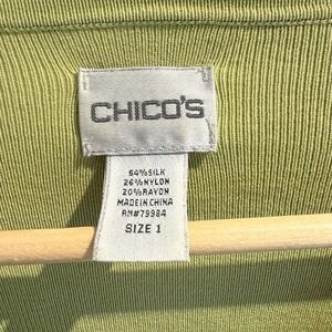 Womens Chicos 1 / M Green V Neck Ribbed Knit Pullover Sweater Silk Blend