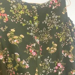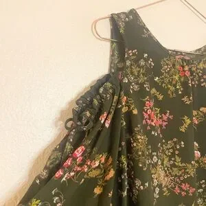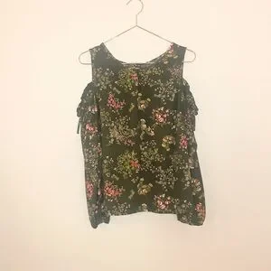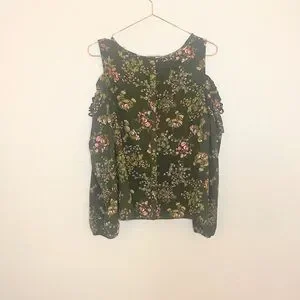LC Lauren Conrad Floral Cold Shoulder Blouse - Olive and Pink