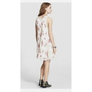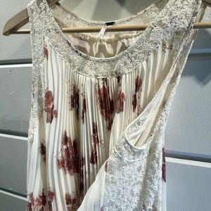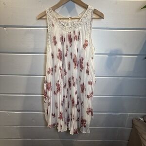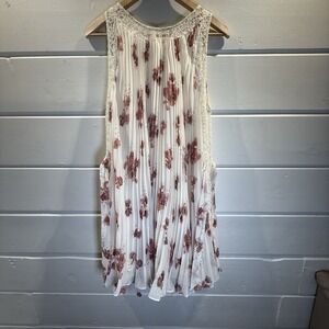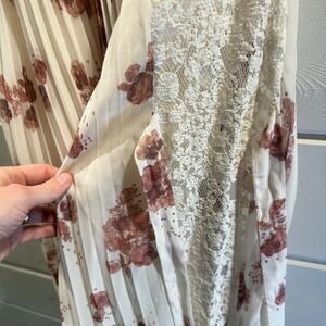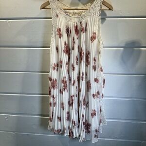 Free People Accordion Pleated Dress Medium Cream Pink Roses, Cottage, Garden