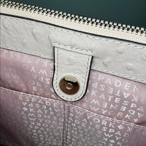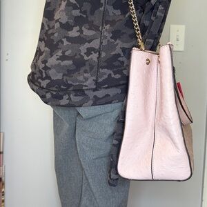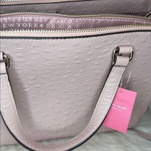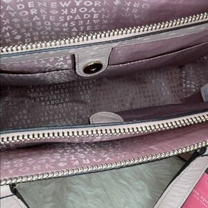 Kate Spade NWT $587 Retail tags Light pink blush pebble leather and gold adjustable crossbody strap two large zipper compartments front and back and middle story with two pockets deep on one side and one large additional zipper pocket on other side. size 13 x 10” approximately lots of storage.
