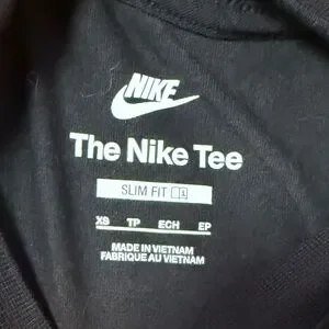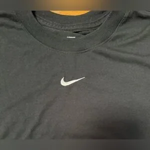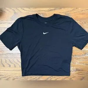 Classic black cropped t-shirt with embroidered Nike Swoosh logo. Soft, casual style.