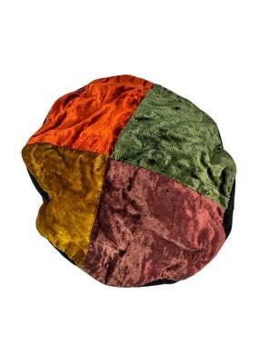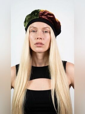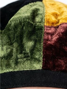 Styles: Beret, Hat, Headwear, Velvet, Patchwork, Bohemian, Chic, Fashion Accessory, Multi-color, Vintage-inspired, Fall Fashion, Winter Fashion, Autumn Style, Cozy Accessory