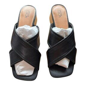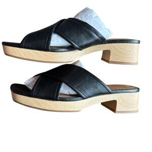 Nordstrom Rack Black Leather Crisscross Open-Toe Sandals Wooden Block Heel