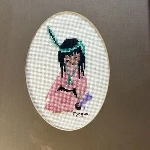Ted DeGrazia Native American Cross Stitch Needlepoint Framed Artwork