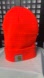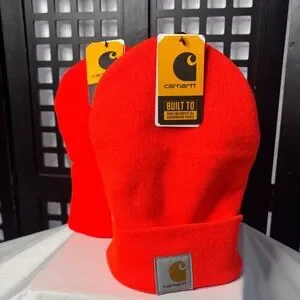 Two Carhartt neon orange knit beanies (A18 watch cap style), one size fits most.