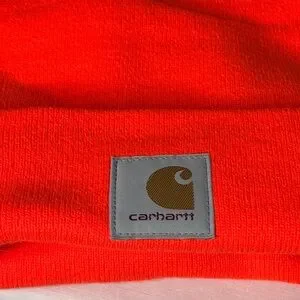 This classic Carhartt beanie is made from soft acrylic rib-knit fabric for warmth and stretch. The bright neon orange color adds high visibility 🔶 and standout style, perfect for workwear, outdoor use, or everyday wear.