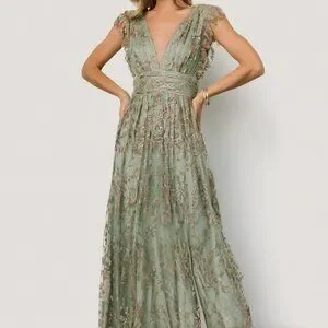 Baltic Born Arlene Shimmer Gown | Sage + Gold Size SS