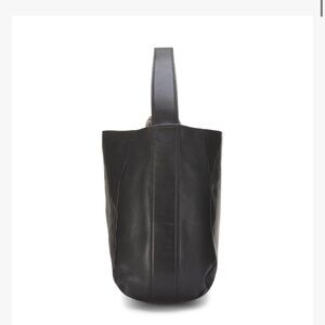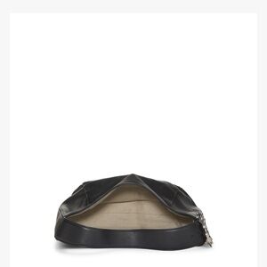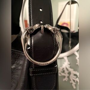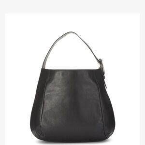The Ribot shoulder bag is crafted in smooth black calfskin and distinguished by a silver-tone buckle engraved with a double-head horse motif.