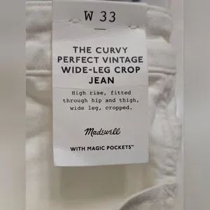 Madewell Curvy Perfect Vintage Wide Leg Crop Jeans W33 NWT Tile White NU078