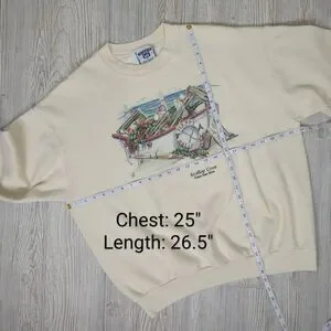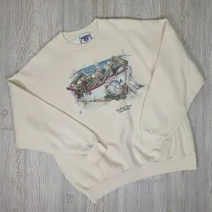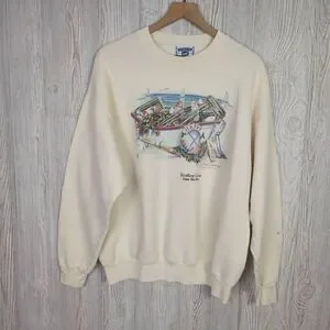 Vintage 90s Lee Men’s XL Scallop Cove Cream Pullover Crewneck Sweater