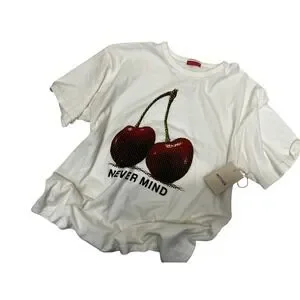 Mother The Sleep Over Tee Women Size M White New Cherry Never Mind T-Shirt