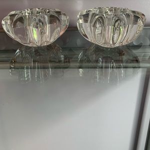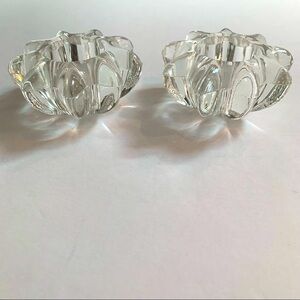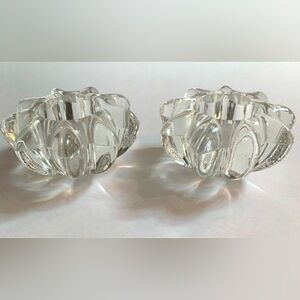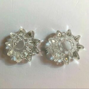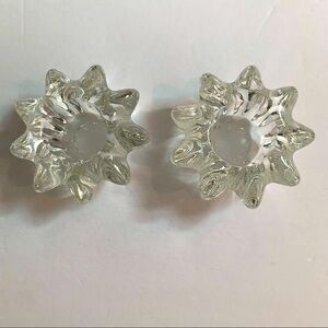 2 Heavy clear glass star flower candle holders 3 1/2” wide
