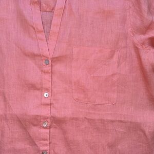 Sigrid Olsen Coral V-Neck Button-Down Linen Roll tab Sleeve Top - large-New