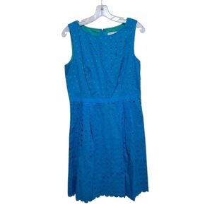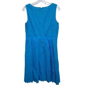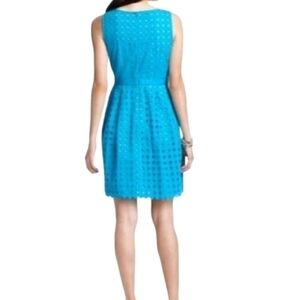 Ann Taylor LOFT Teal Blue Green Diamond Eyelet Sleeveless Dress sz 8
