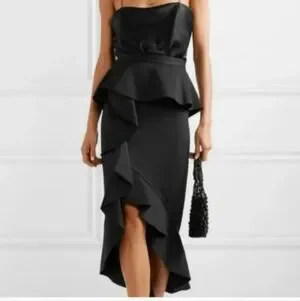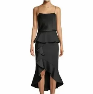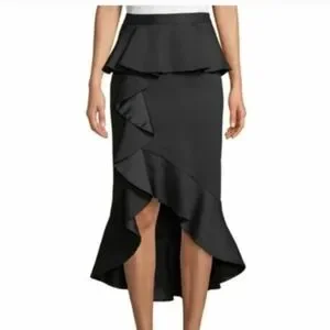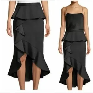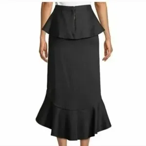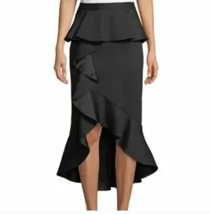 Alice + Olivia Black Alessandra Ruffled Peplum Hi-Low Skirt SIZE 2