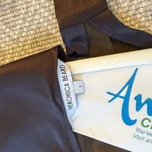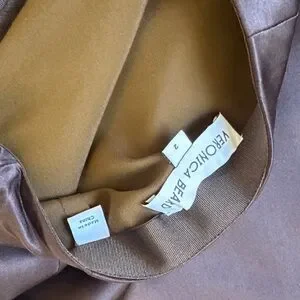 Chic dark brown skirt set by Veronica Beard. Features a sleek top and flowing skirt. Ideal for versatile styling.