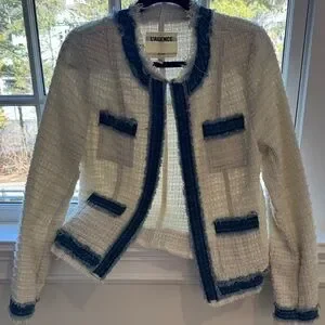 L'AGENCE Women's Cream and Black Tweed Blazer