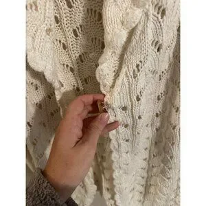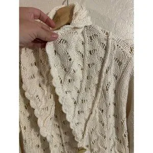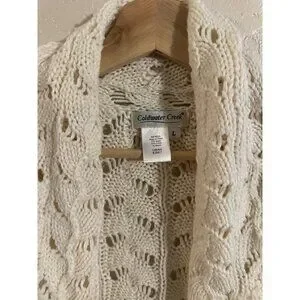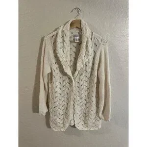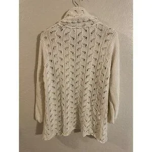 Y Coldwater Creek Cream Ramie & Cotton Chunky Knit Fisherman Cardigan