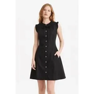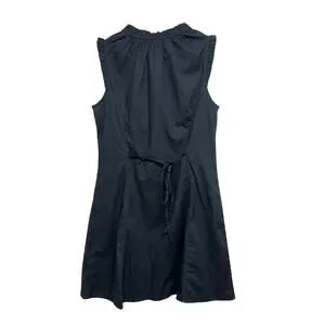 New with tags J.Crew Factory black cotton blend button-front dress. Features a ruffle tie-neckline, sleeveless silhouette, and flattering A-line shape with back waist tie. Easy everyday dress that works for casual wear, office, or travel.