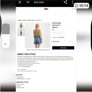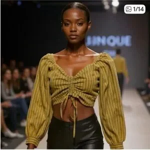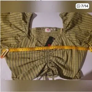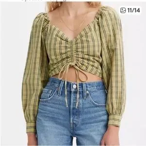 NWT Levi's Yellow Striped Ruched Crop Blouse size Medium