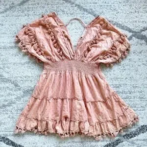 Z&L Europe Blush Pink Plunge Neck Tassel Mini Dress Cover Up Size L