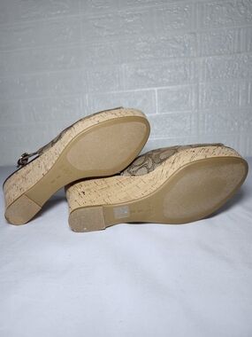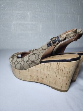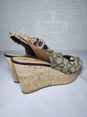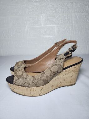 Coach Women's Slingback Wedge Sandals Tan Monogram Size 8