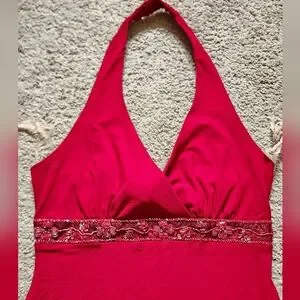y2k whimsigoth fairy red halter beaded dress fairy flirty formal prom sexy large