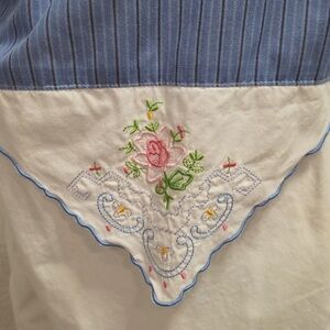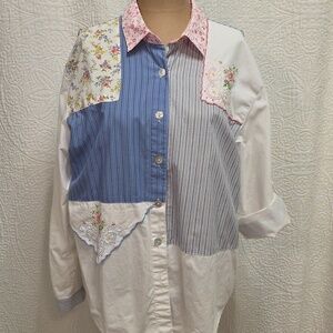 Colorful Patchwork Button-Up Shirt Blue White Pink Handkerchief Grandma Cottage